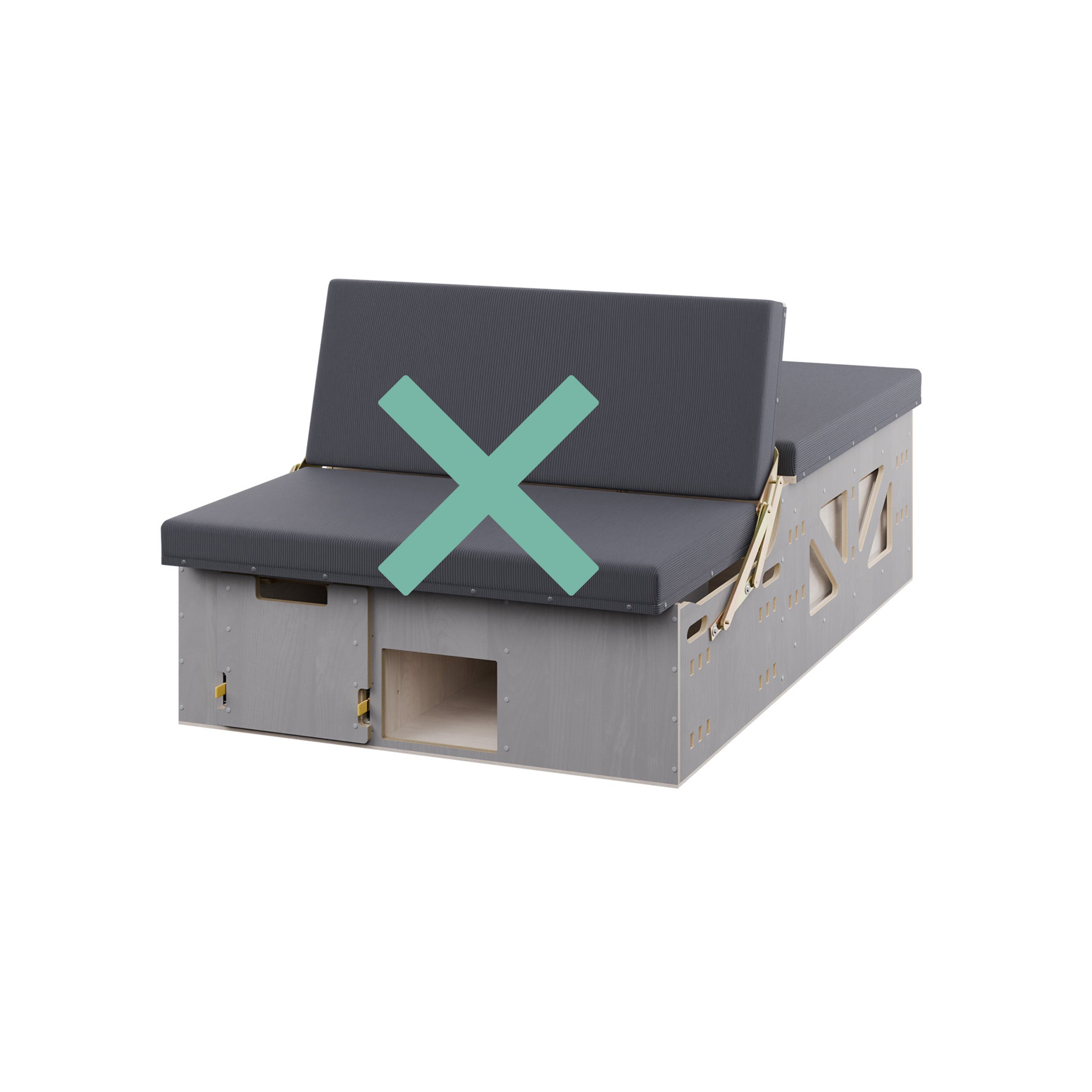 Die Grundfläche der VANBOX360 beträgt 155 x 120 cm. Klappt ihr sie zum Schlafen um, habt ihr eine Liegefläche von 190 x 120 cm. Für besonderen Komfort sorgen die hochwertigen Schaumstoffmatratzen mit abnehm- und waschbaren, wasserabweisenden Bezügen. Die Polster sind zudem mit Druckknöpfen an der VANBOX360 befestigt, wodurch ein fester Sitz gewährleistet ist und selbst bei holprigen Fahrten nichts verrutschen kann.